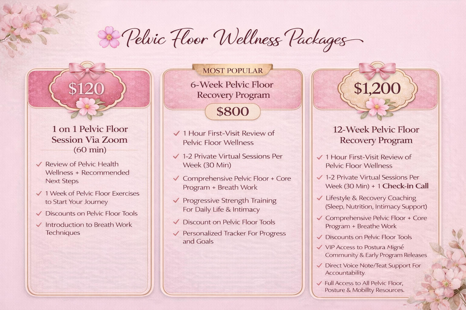Our pelvic floor is the foundation of your core, it supports your organs, your posture, your breath, and your confidence. My Pelvic Floor Program was created to help women reconnect with their bodies through gentle yet powerful movement, intentional breath-work, and personalized therapeutic exercises that restore strength, balance, and alignment from within.