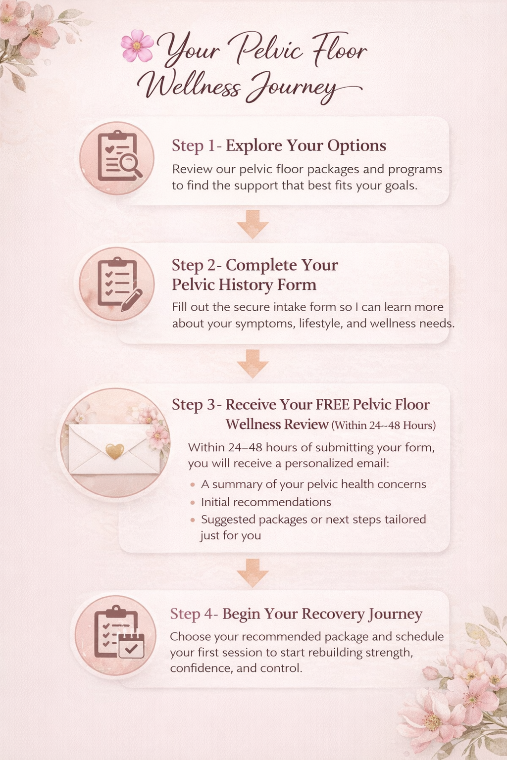 (FILL OUT THIS FORM IN IT’S ENTIRETY & RECEIVE FREE PELVIC HEALTH RECOMMENDATIONS FOR STARTING YOUR JOURNEY)